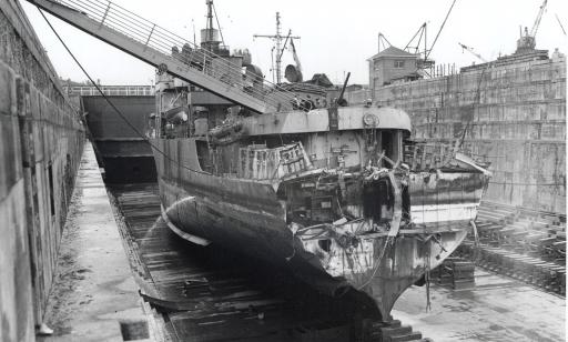 On October 14, 1944, the HMCS Magog was torpedoed by the U-1223 off Pointe-des-Monts. Three people died in the attack. Although heavily damaged, the ship remained afloat and was towed to the shipyard in Lauzon. However, it was found to be damaged beyond repair and was sold for scrap in 1945.